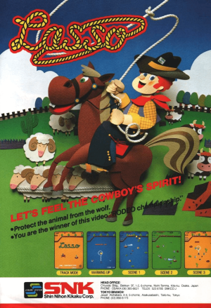 Lasso (ラーソー, Rāsō) was an action arcade video game by SNK. It was published in Japan and the United Kingddom by SNK and by SNK Electronics in the United States of America.